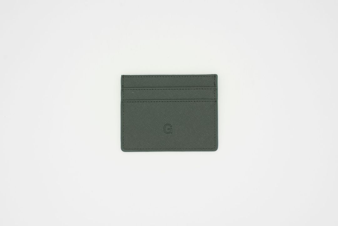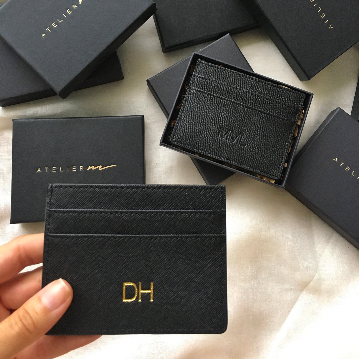 Tarjetero en cuero saffiano, personalizado con hasta 4 iniciales grabadas en dorado, plata o ciego (sin color). Tiempo de producción: 3 días hábiles