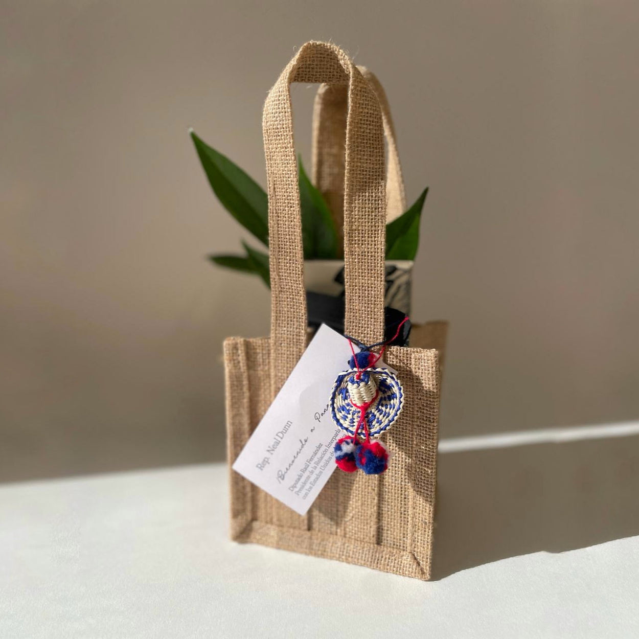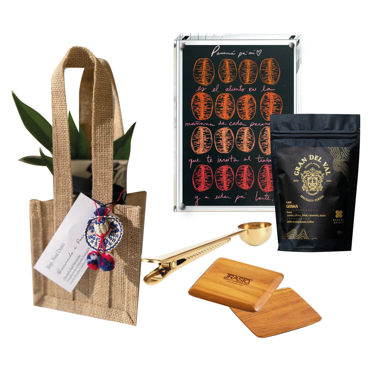 Packaging: En bolsa de yute decorada con artesanía panameña y follaje. Incluye tag de bienvenida.
