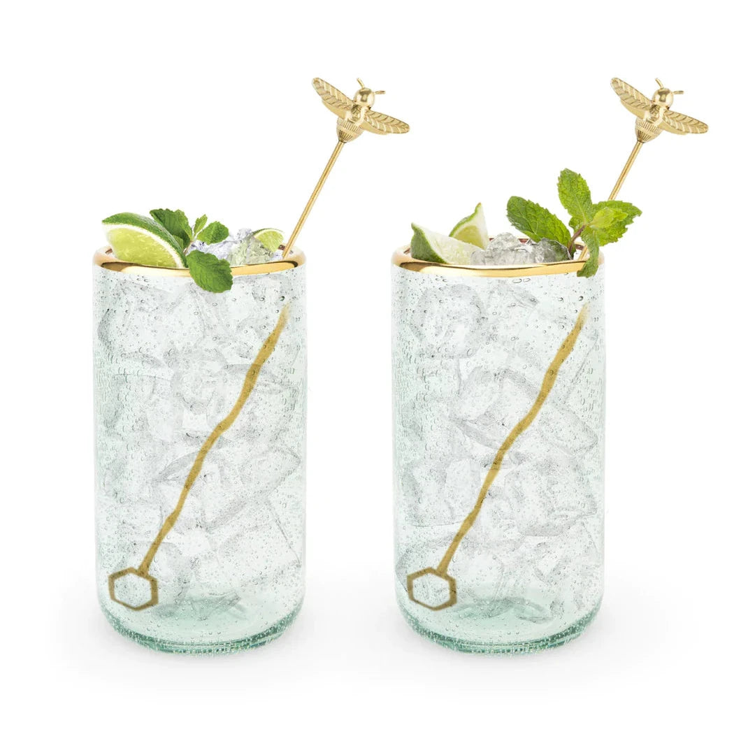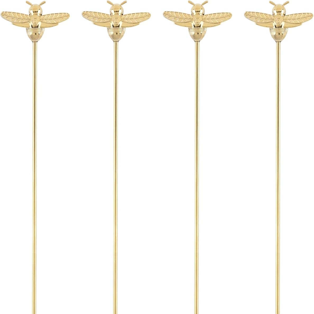 Pon tu trago a brillar con estos hermosísimos revolvedores de abeja. Fabricados en aleación de acero inoxidable y zinc, con acabado enchapado en oro. 8.75" de largo. Set de 4.
