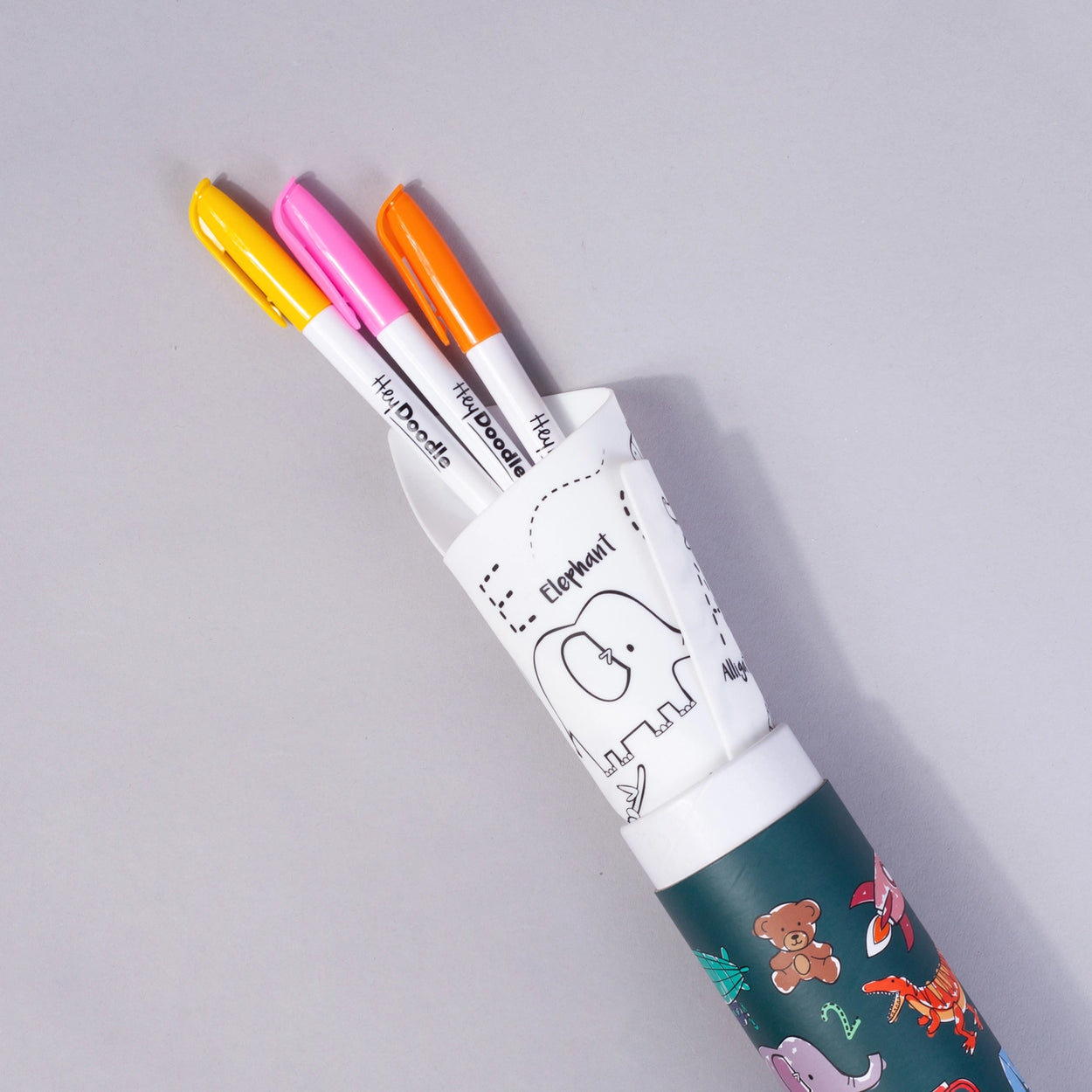Incluye 3 marcadores y un tubo para llevarlo contigo donde vayas. 30x20cm