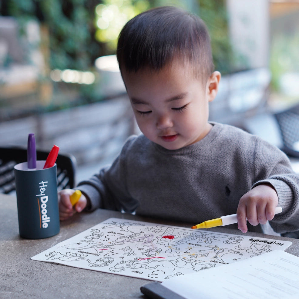 Con este mat de dibujo reutilizable, podrás llevar la diversión para los niños contigo.