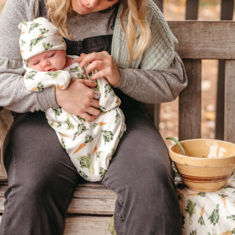 Este adorable conjunto de batita y gorro a juego te acompañará desde el emocionante primer viaje a casa hasta los primeros meses de encuentro en la mecedora. Delicadamente fabricado en bambú orgánico, mantendrá a tu bebé fresco y cómodo mientras resalta su ternura con sus estampados vintage. 0-4m.