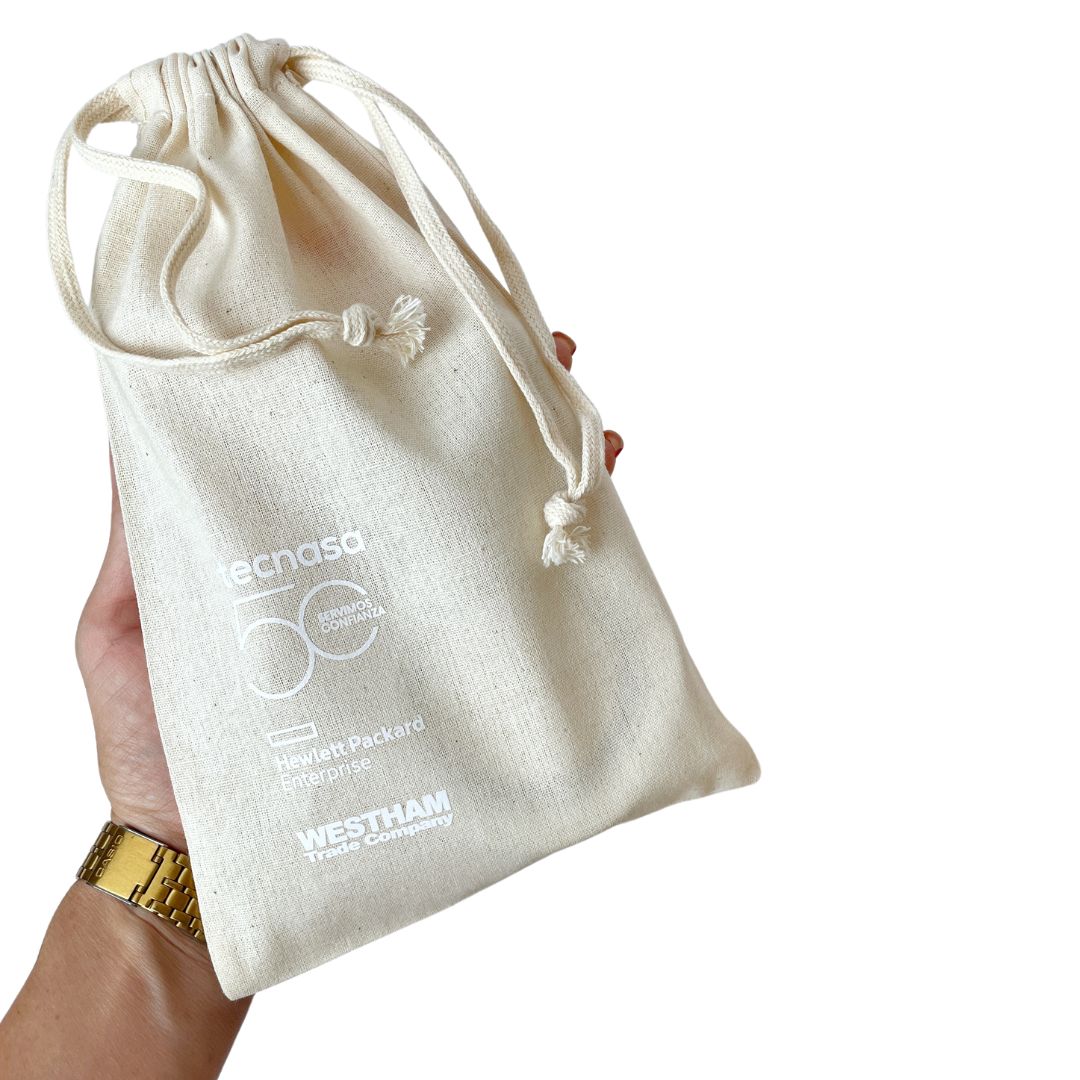 Packaging en drawstring cotton bag personalizada con logo.