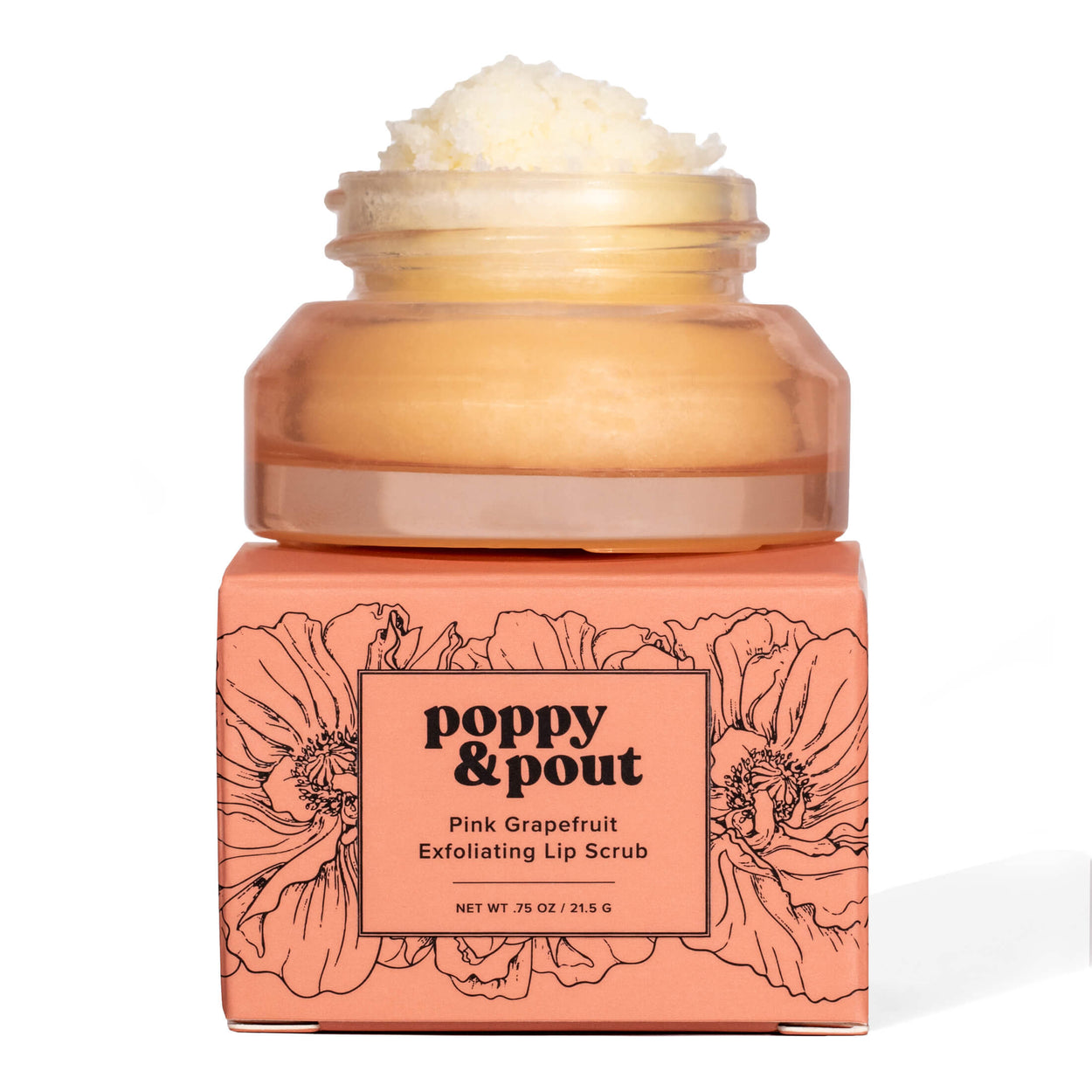 Lip Scrub Poppy & Pout: Este exfoliante labial elaborado cuidadosamente con ingredientes naturales y aceites esenciales eliminará las células muertas de tus labios, dejando una sensación tersa y suave. Pocket Size para llevarlo a todas partes.