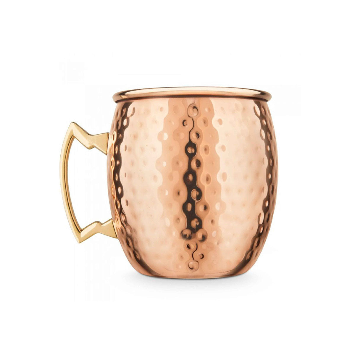 Hecha a mano 100% en cobre macizo que mantiene el frío. Acabado martillado. Capacidad 16oz.