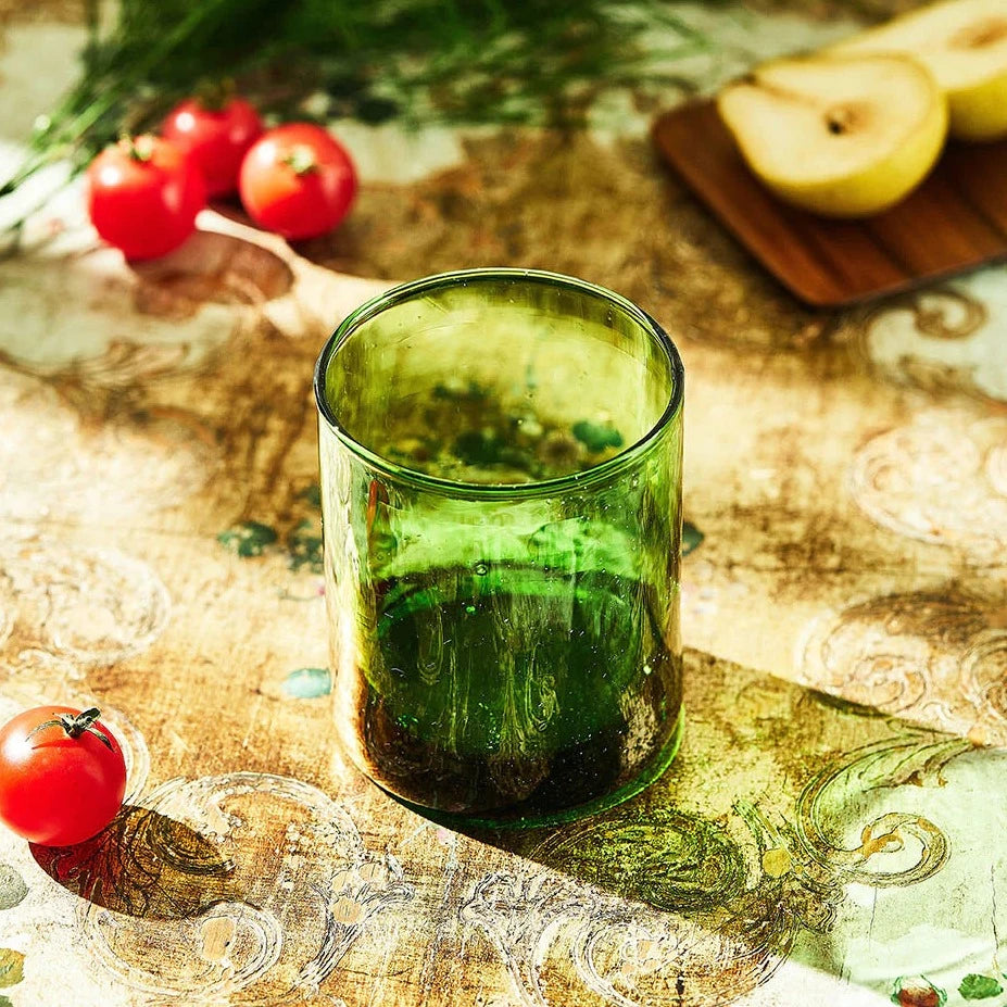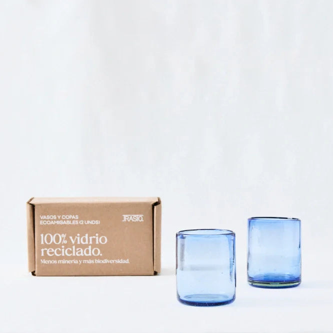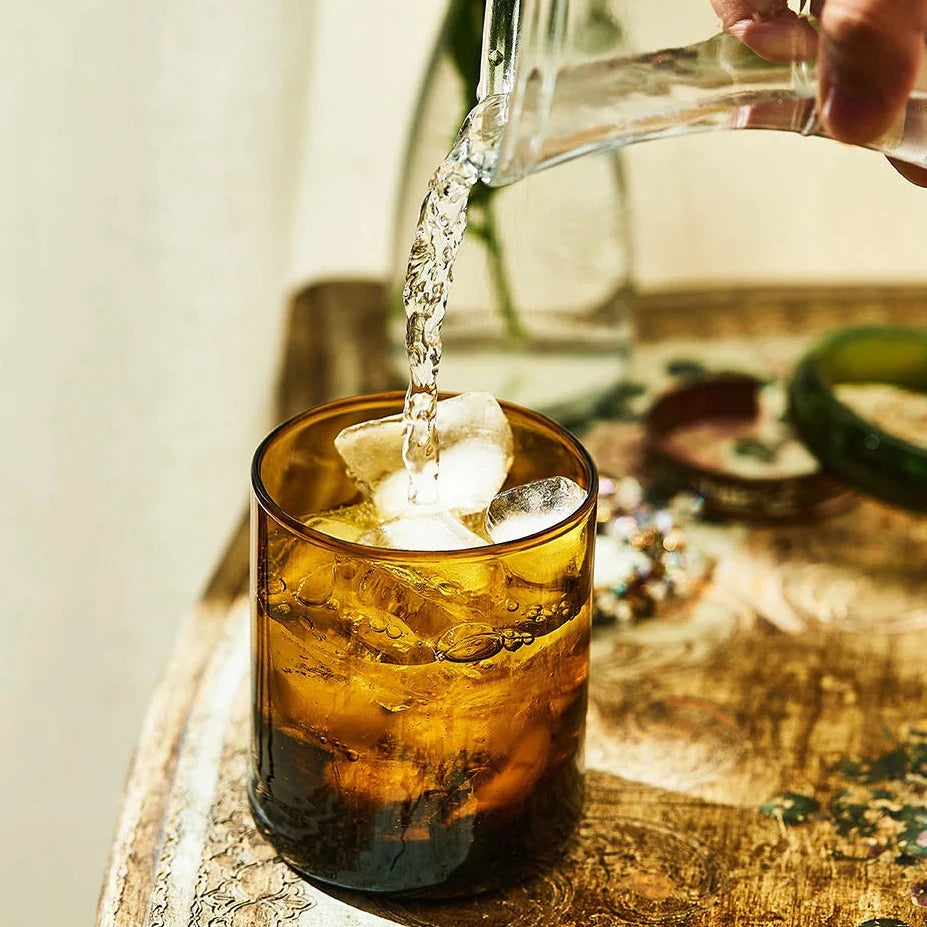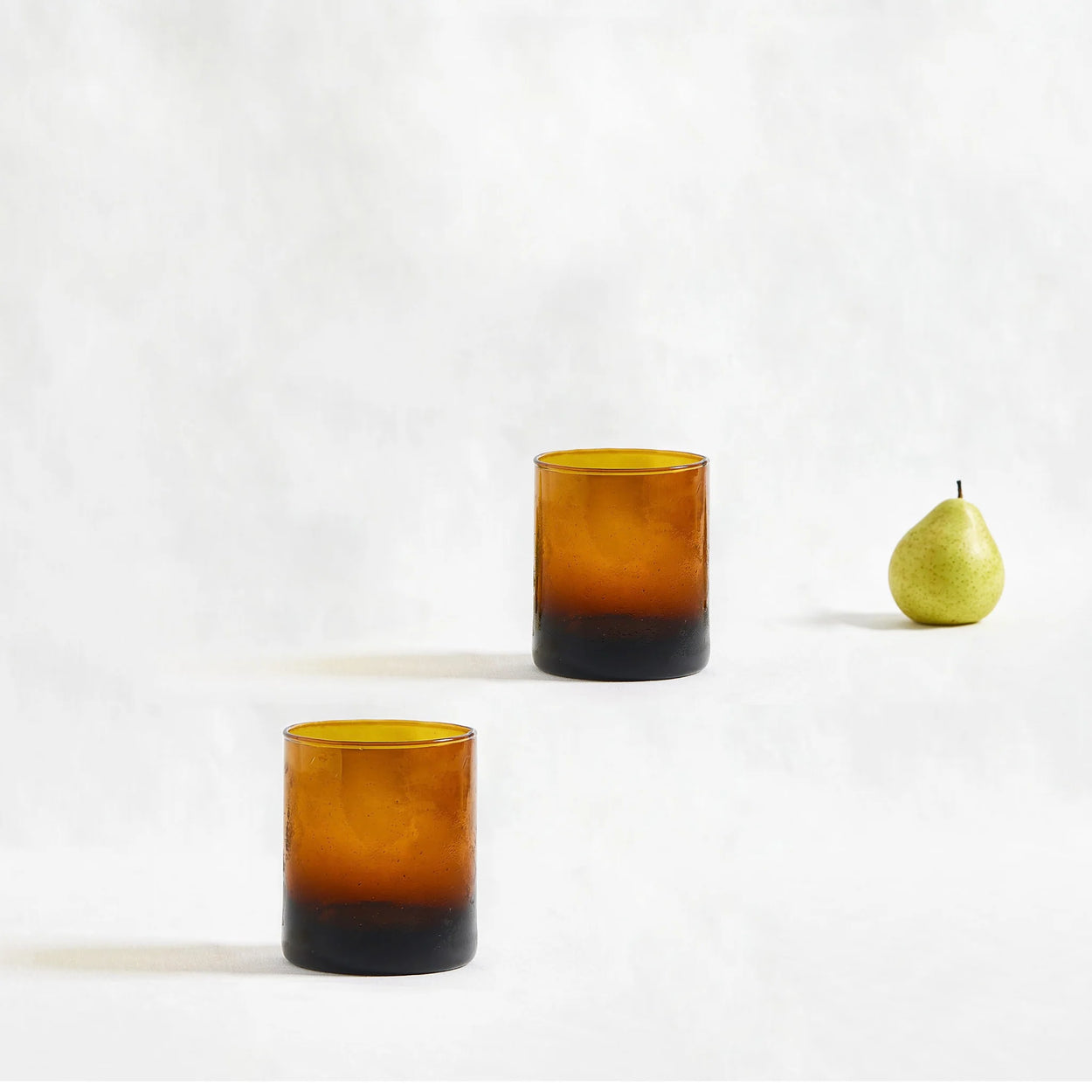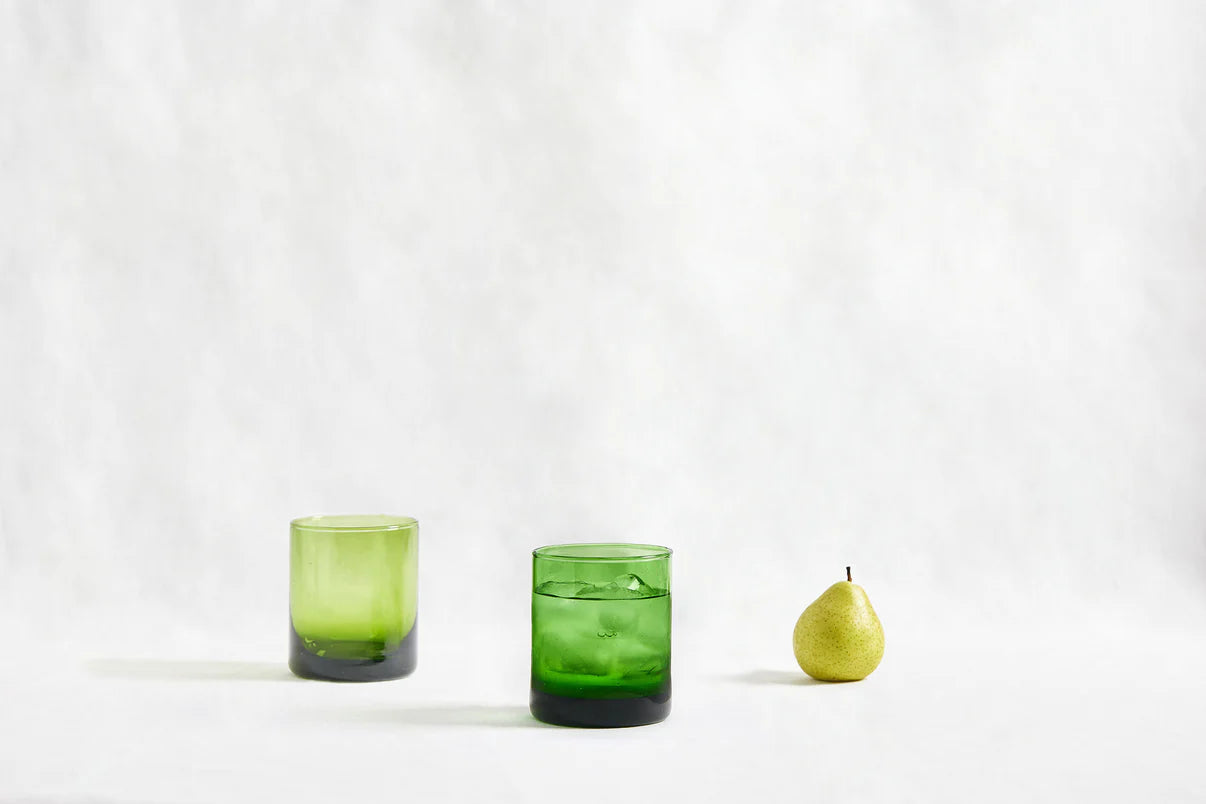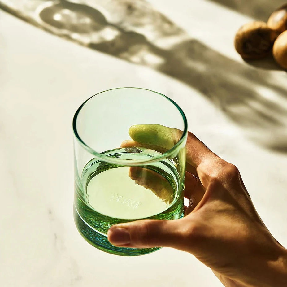 Su base sólida, su forma inusual y su borde levemente irregular revelan su encantador toque artesanal. Soplado a mano, en vidrio 100% reciclado. Capacidad 12 oz