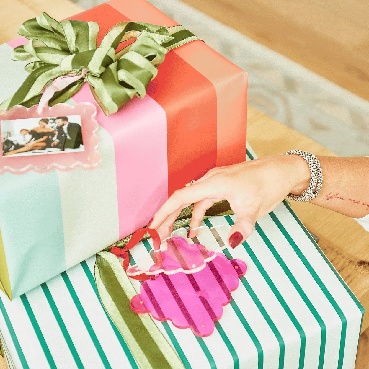 Este marco en acrílico brillante y adornado con una cinta de terciopelo a juego, ¡dará un toque de alegría festiva a tu decoración navideña! Está compuesto por 2 paneles que se unen fácilmente con cuatro imanes de alta resistencia, donde podrás lucir fotos, tarjetas de buenos deseos o inlcuso usarlo como el tag de regalo mas chic, original y personalizado.
