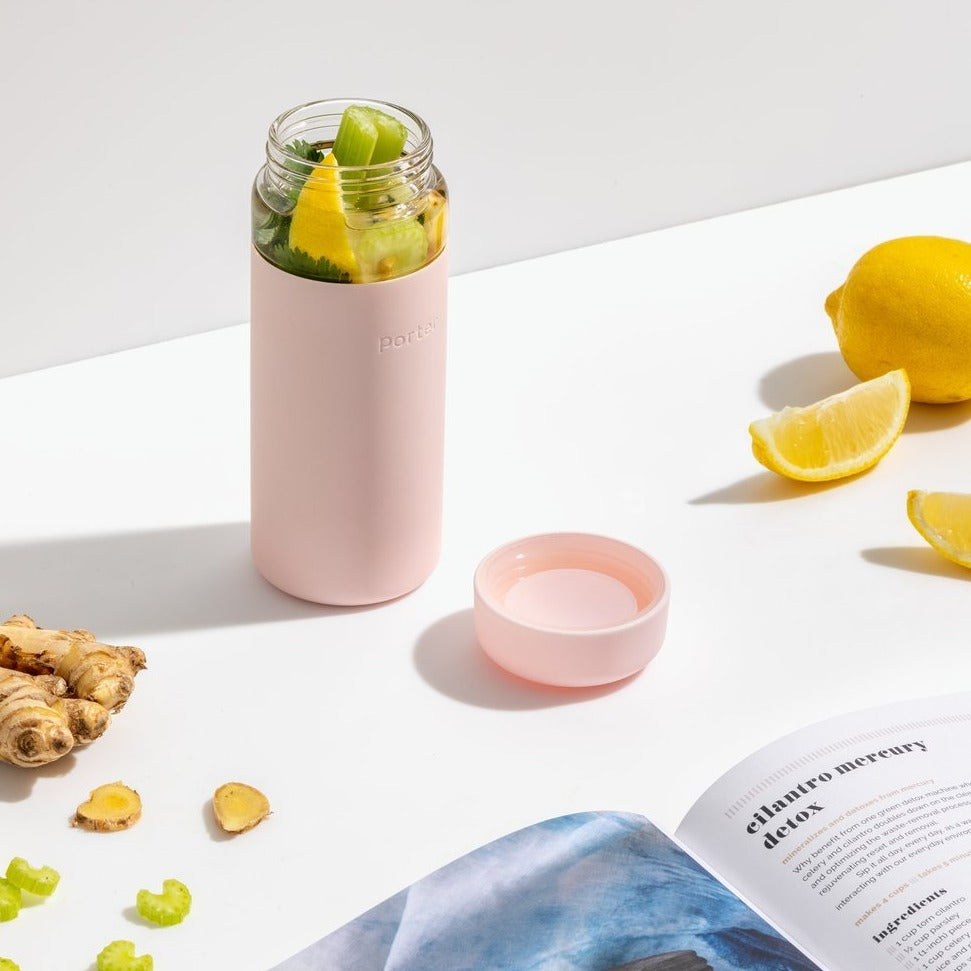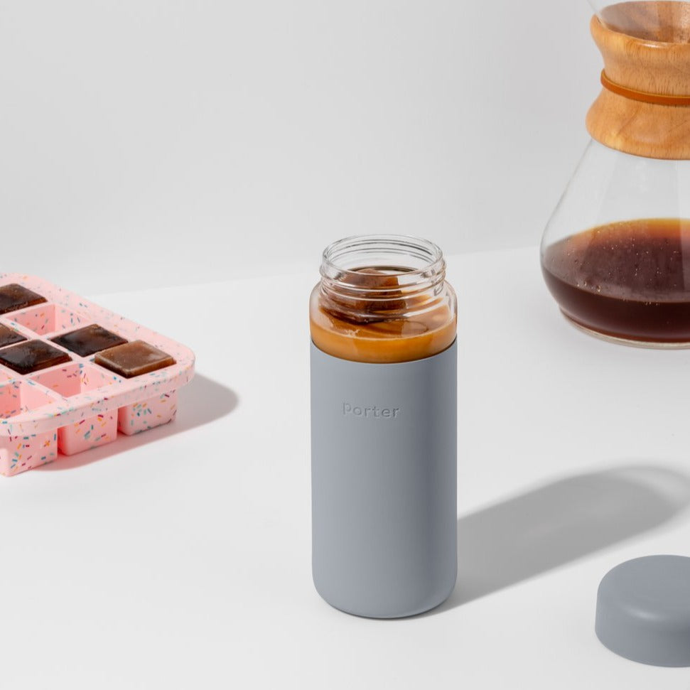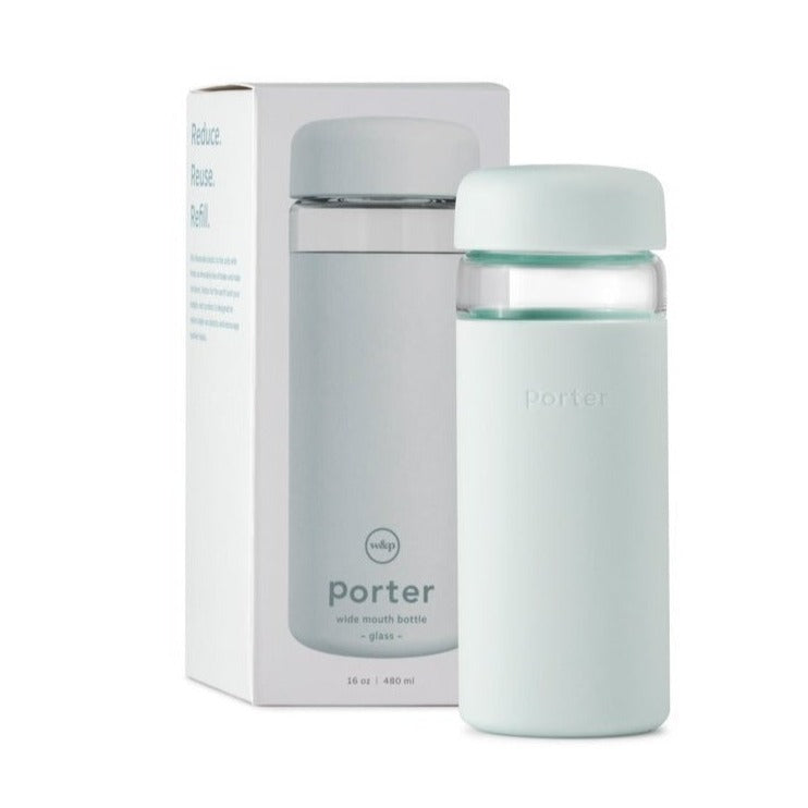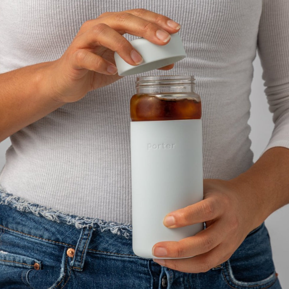 Botella reutilizable para agua fabricada en vidrio borosilicato de alta calidad, protegida con funda de silicona suave al tacto. Minimalista, con mucho estilo y diseñada para soportar años de uso diario. Boca ancha para fácil limpieza. 16 oz.
