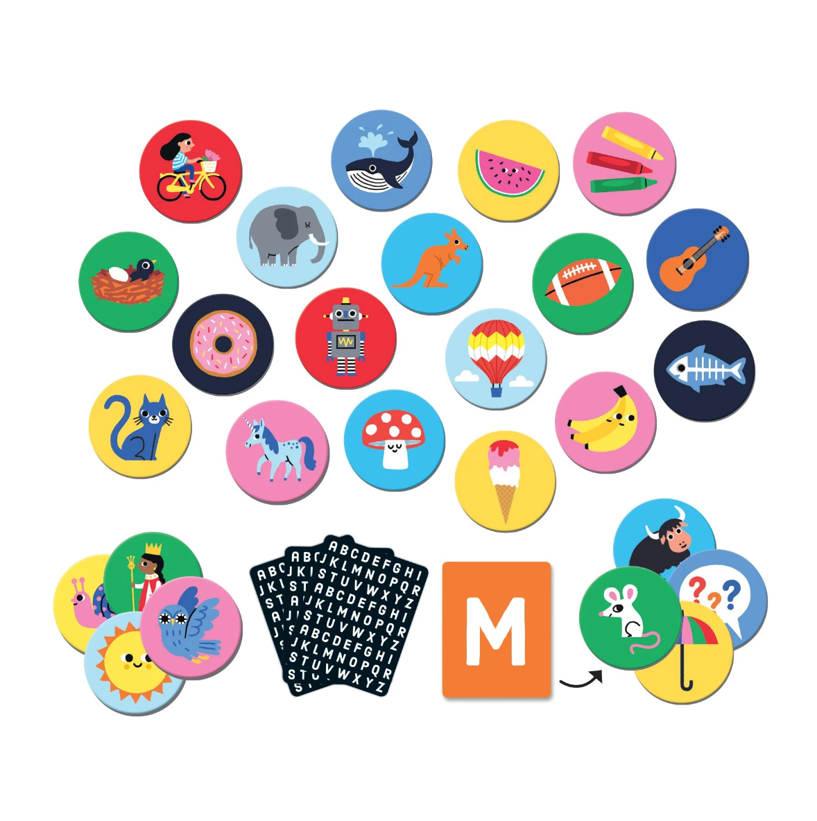 ABC Spot Me!: Un juego educativo, emocionante y divertido para niños y grandes. Los jugadores intentarán ser los primeros en detectar una ficha que comience con la letra en la tarjeta y luego recogerla. ¡El jugador con más fichas es el ganador! 60 fichas con imágenes y 26 tarjetas ABC, en una práctica bolsa de tela para guardar y limpiar fácilmente - perfecto para llevarlo siempre en la maleta. Edad: 5+, 2+ jugadores