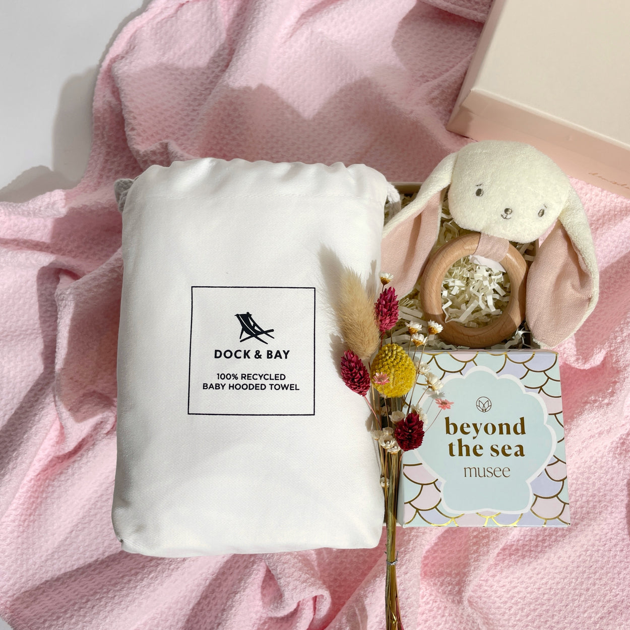Hooded Baby Towel by Dock & Bay: Esta waffle towel para tu bebe seca dos veces más rápido que el algodón normal y es super absorbente. Opción de personalización con bordado de iniciales o nombre - $5 adicional.