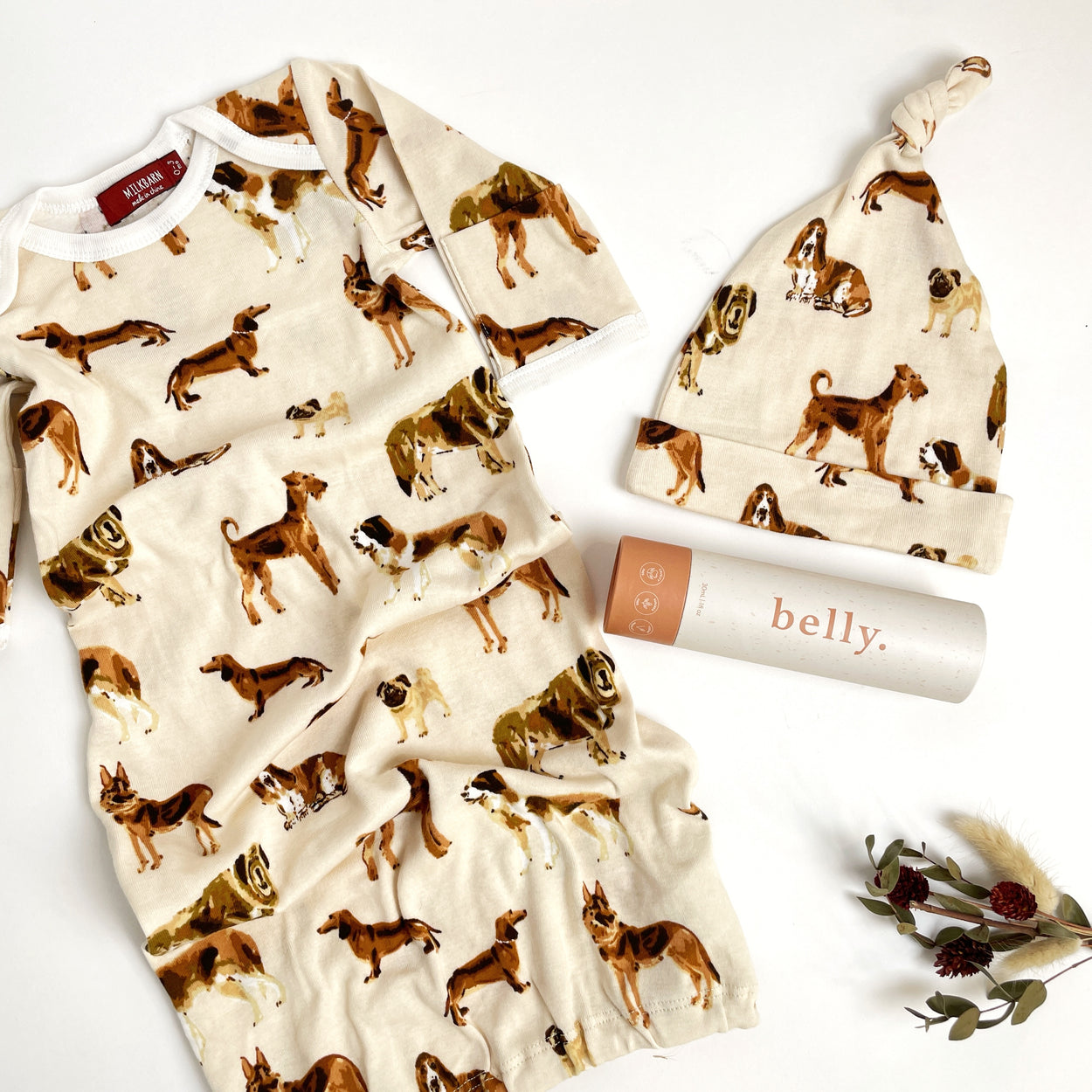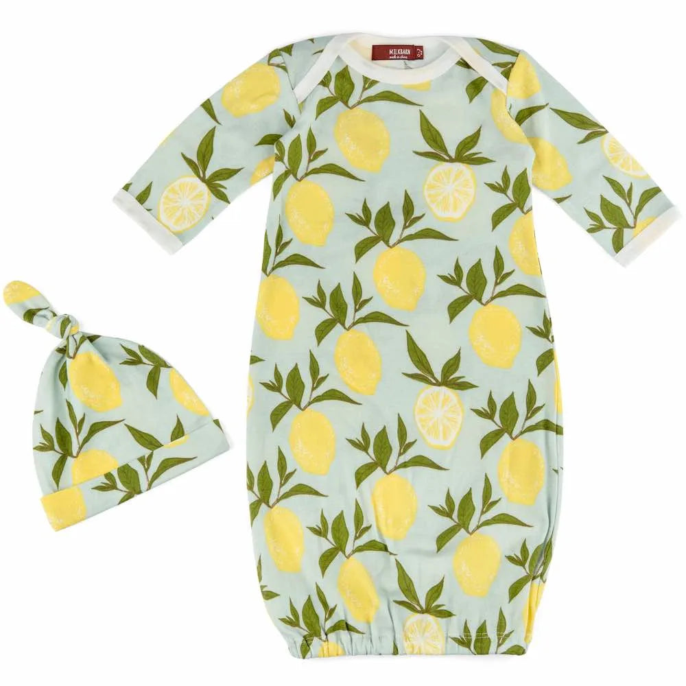 Newborn Set by Milkbarn: Este adorable conjunto de batita y gorro a juego te acompañará desde el emocionante primer viaje a casa hasta los primeros meses de encuentro en la mecedora. Delicadamente fabricado en bambú orgánico, mantendrá a tu bebé fresco y cómodo mientras resalta su ternura con sus estampados vintage. 0-3m.