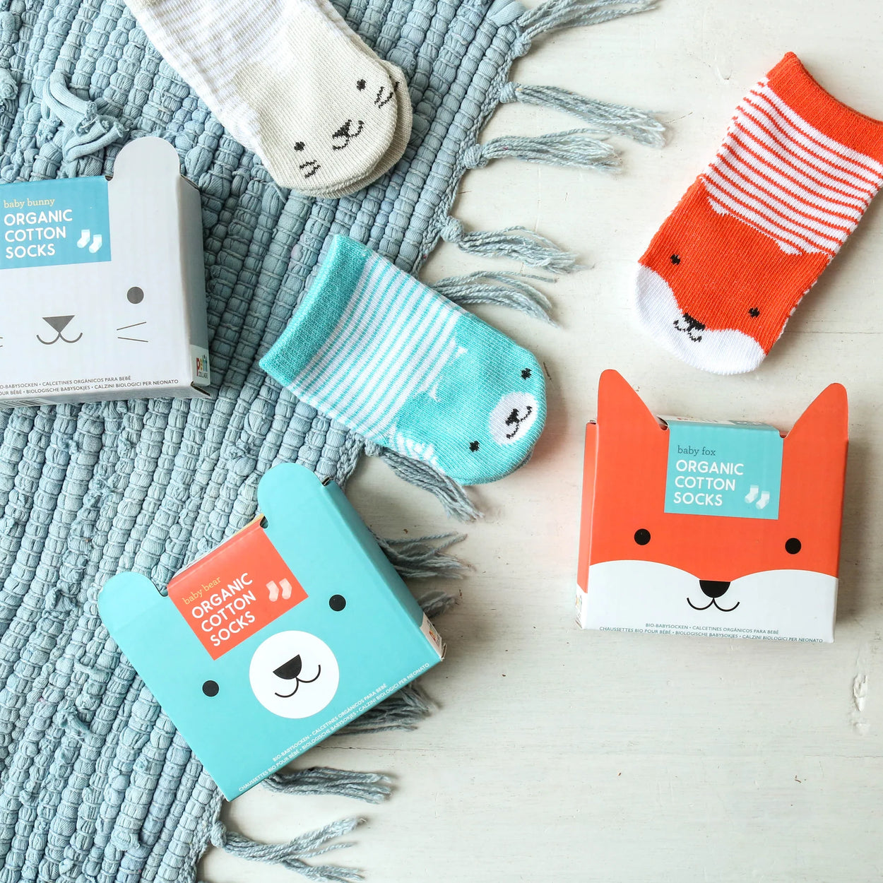 Medias para bebé Petit Collage: mantén calientes sus piecitos con estas medias en algodón orgánico mientras te derrites con sus adorables dibujos de animales del bosque. 0-6m