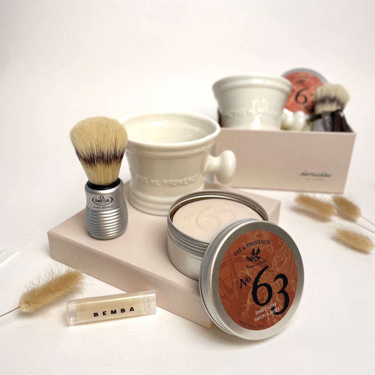 Shaving Soap No.63: Especialmente diseñado para el cuidado de la piel masculina, hidrata y humecta sin dejar residuos, con una fragancia sutilmente especiada. Haz espuma con una brocha húmeda y aplica sobre la piel para un afeitado refrescante.