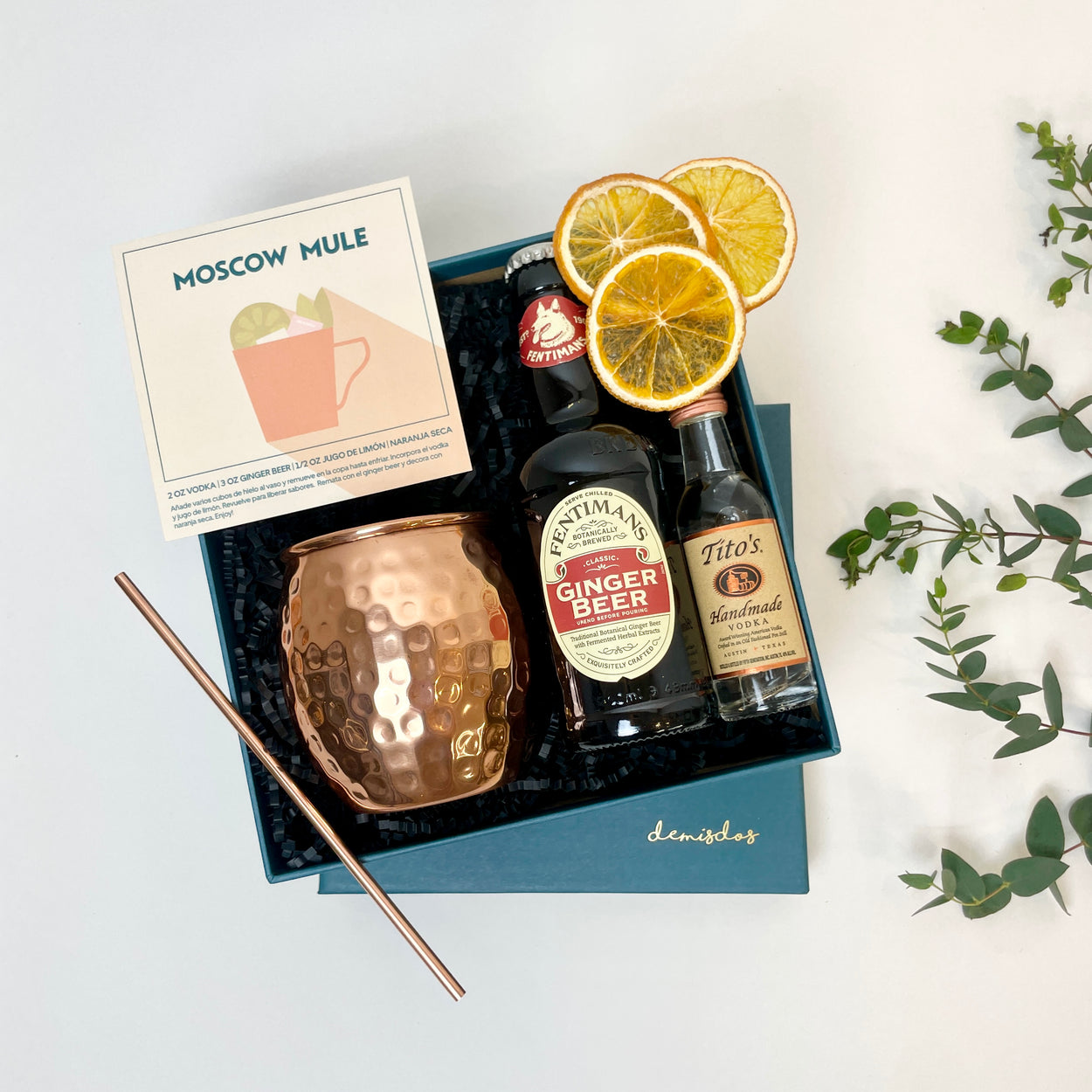 1 ó 2 Pitillos / revolvedores: Accesorio en cobre que te alegrará a tí y a tu Moscow Mule. Tómalo bonito y remata con la menta fresca!